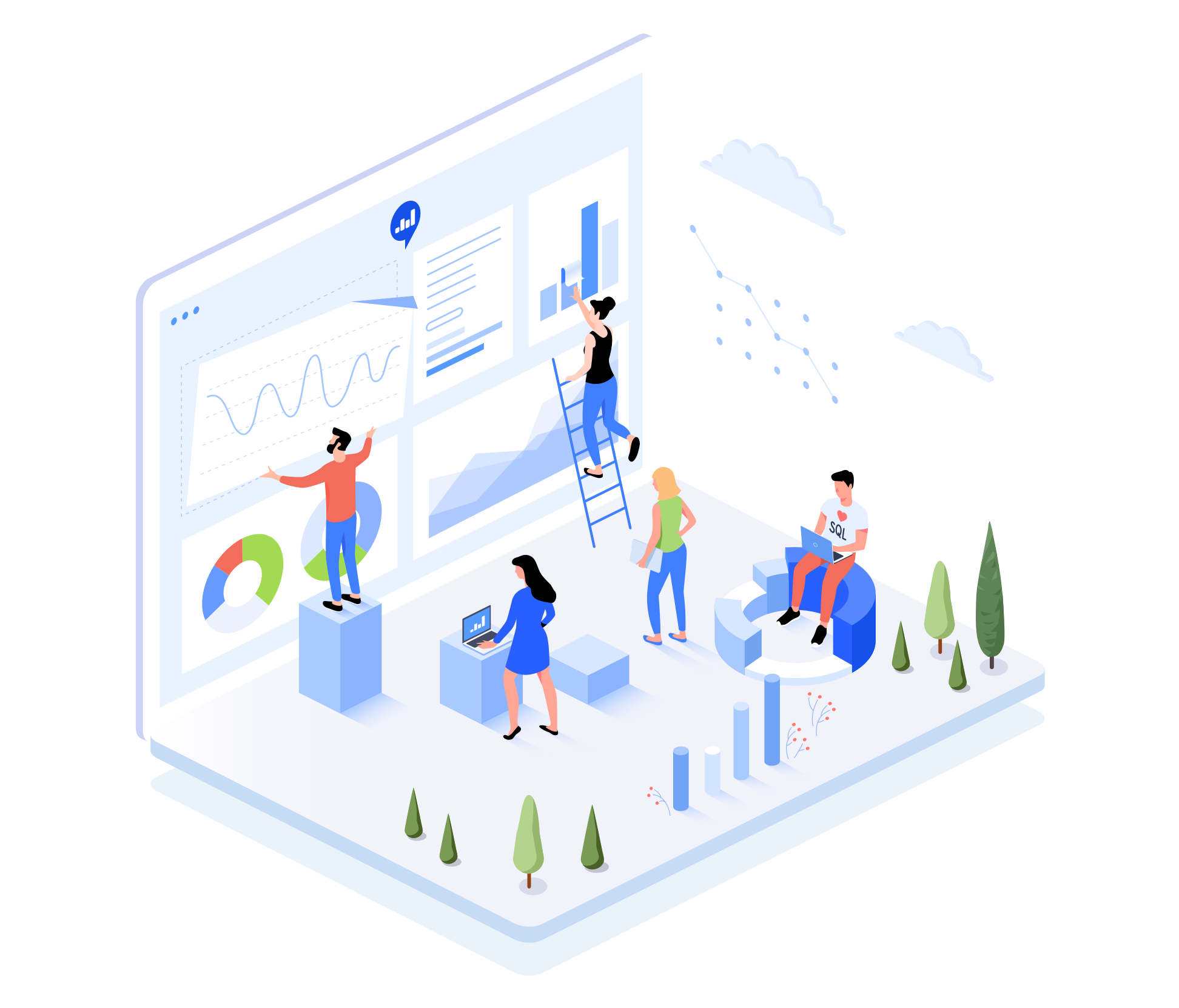 Connect and query your data sources, build dashboards to visualize data and share them with your company.