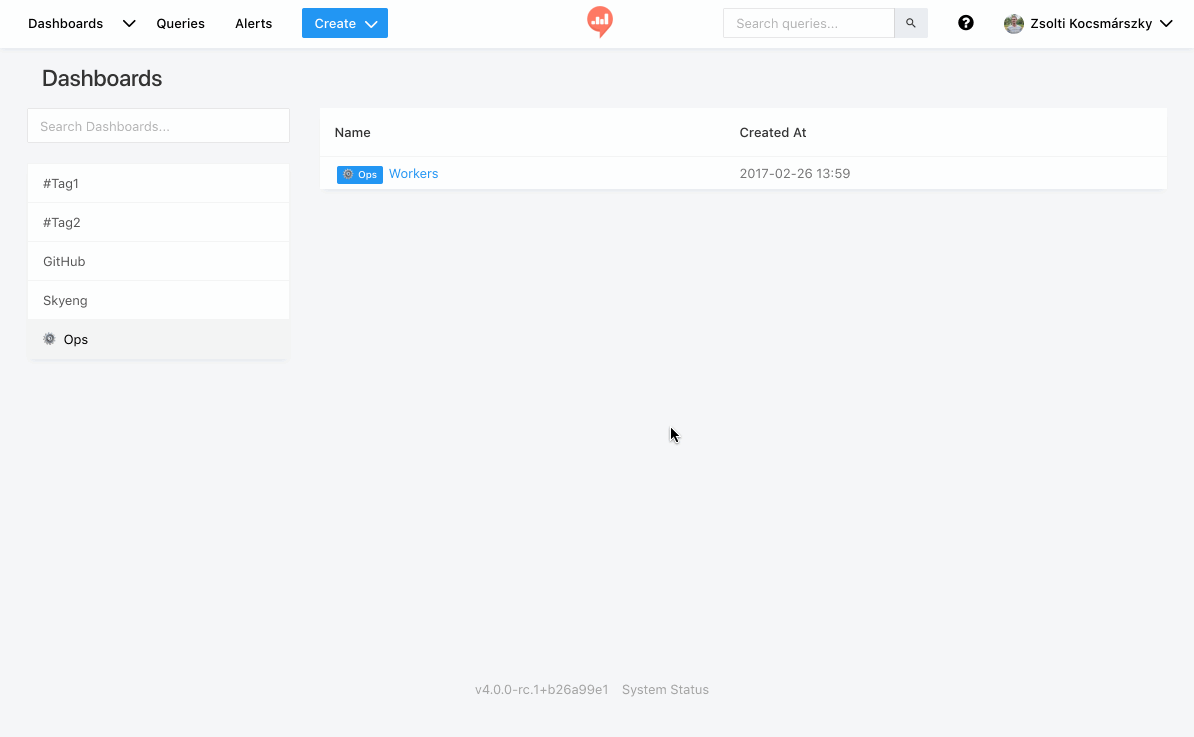 You can combine visualizations and text into thematic & powerful dashboards. Add a new dashboard by clicking on “Create” in the navigation bar, and then choose “Dashboard”. Dashboards are visible for your team members or they can be shared publicly. For more details, click here.