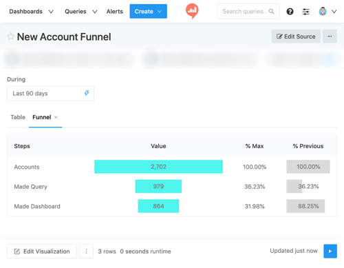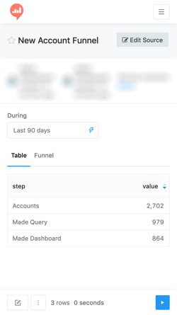 The Funnel Visualization is available on the Visualization Type menu. It’s easy to make because it needs only two fields from your query: step and value.